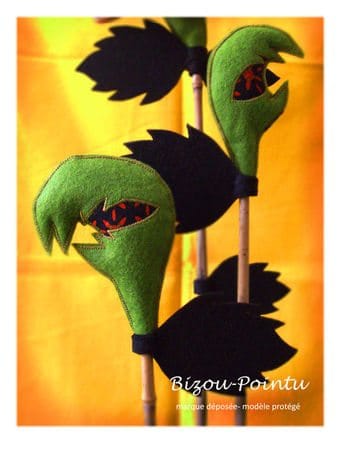 Il existe pour le moment en 4 ver­sions: fleurs vertes, fleurs noires, fleurs oranges et fleurs tis­sus motif vert…(autres col­oris pos­si­bles sur com­mande)