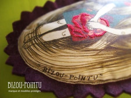 Les détails qui comptent…la broderie de la fleur et des joues (uniquement sur Grands modèles!), le nom,et la signature…