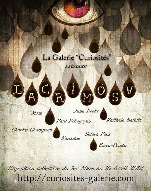 Ce soir à l’heure du crime ( minuit pour les tête-en-l’air ou les couche-tôt) les oeuvres de la nouvelle expo collective “Lacrimosa”