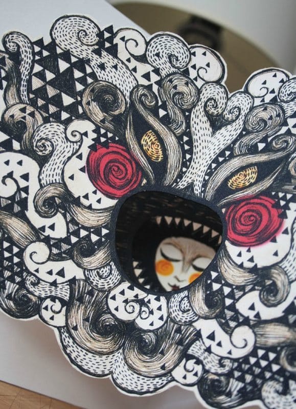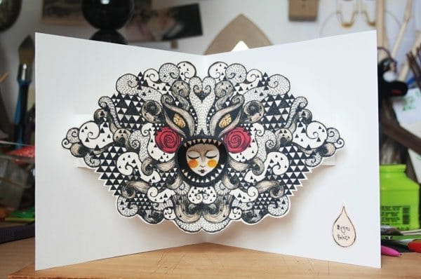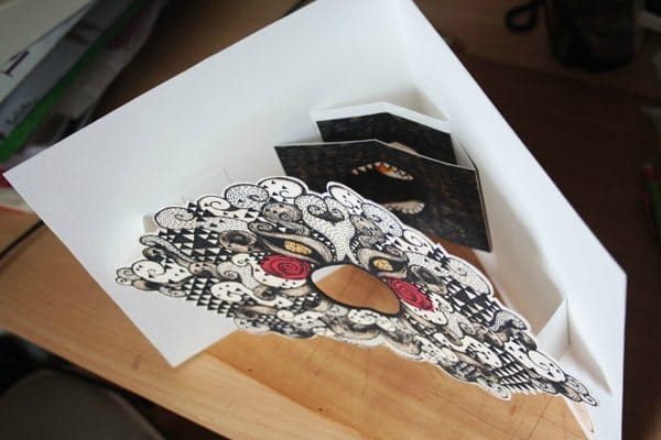 Illustration d’abord puis carte en volume ensuite pour le premier thème du blog “TILT”: “Le Monstre du Placard”.