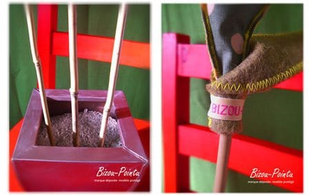 Le détail qui compte cette fois-ci c’est la petite étiquette textile “Bizou-Pointu” sur la tige comme une Bague!