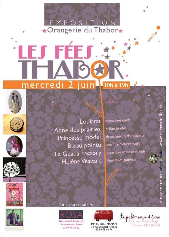 Tout d’abord expo collective “Les Fées Thabor”: des créatrices investissent les lieux, mercredi 10 à 19h, à L’orangeraie au coeur du parc thabor de Rennes, voyez plutôt: (je ne pourrai pas y être présente physiquement mais quelques créations choisies seront là!^^ et il y aura les créa d’entre autre loulataï, Lovelux, Anne des Prairies et d’autres encore…)